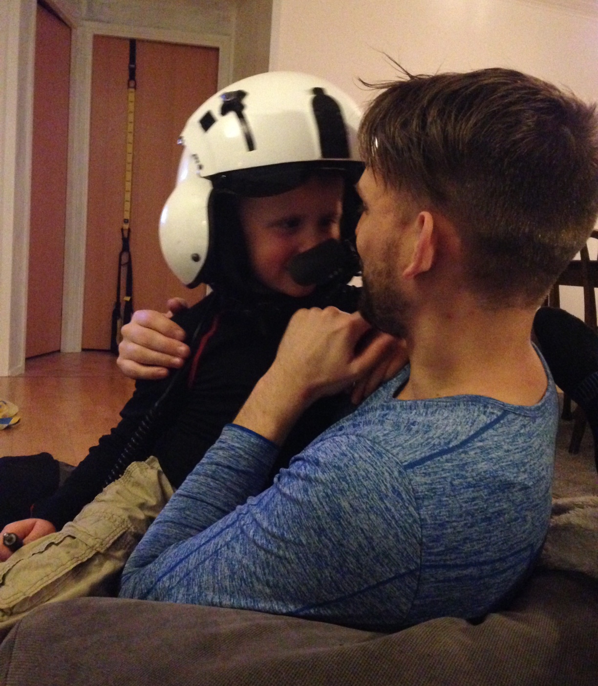Lite söndagstrams med pappan. Fått prova jobbhjälmen. En av helgens bästa kommentarer var; Har ni inga fräckare grejjer än helikopter på jobbet?! Bulldozer och sånt?!