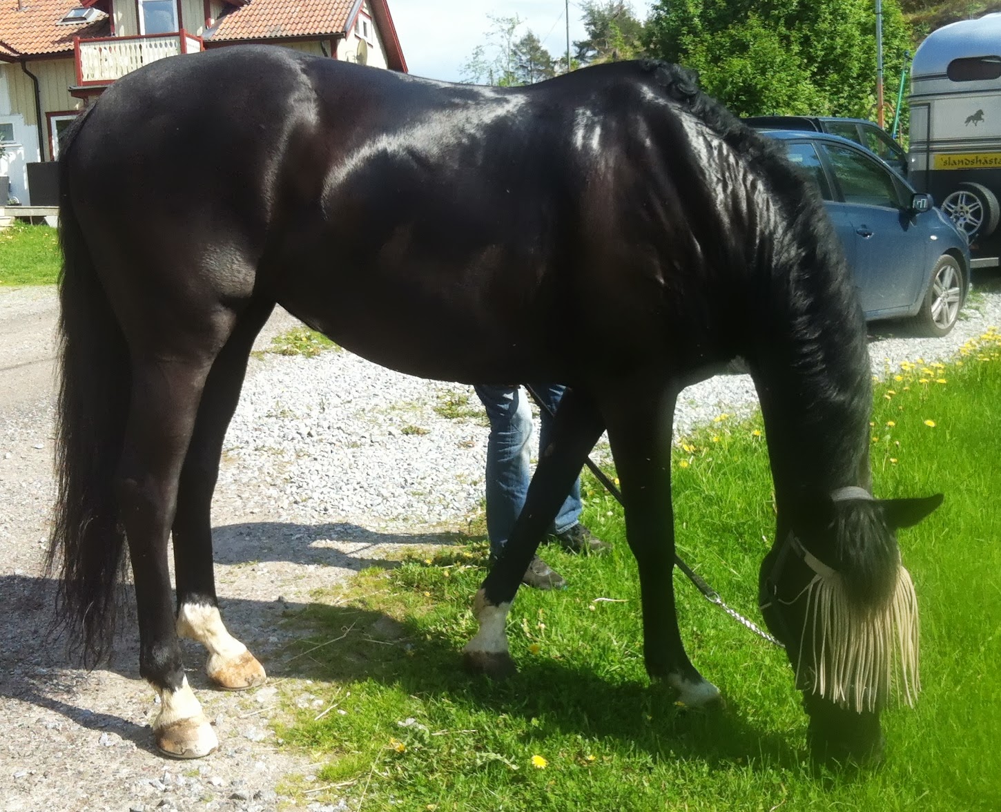 Idag jobbade vi lite med att komma bra in och få till bytena halvt igenom. Fick lägga in lite trav då det blev lite hetsigt. Så fräck hon är att länga traven med. Sitter så bekvämt och hon blir lätt fram. Ljuvlig! Så avslutade vi med ett byte åt varje håll. Lite hetsigt åt det svåra hållet (jag rider lite för ettrigt) men båda var bra. Så har hon ju fått mumsa gräs. Det bästa som finns. 🙂