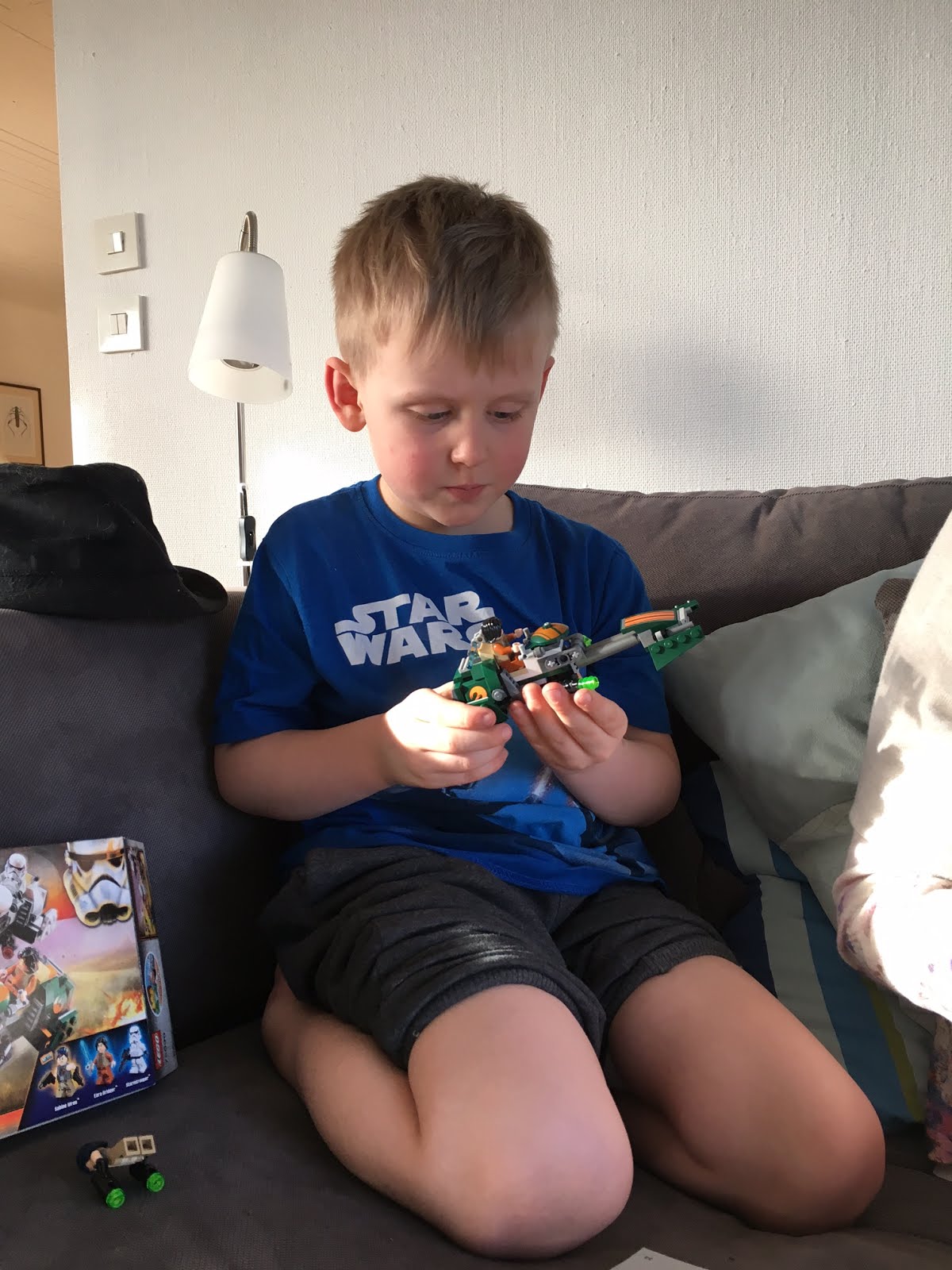 Bus fick lite godis på Påskafton men jag köpte en liten lådda lego. Nästan det enda han leker med. Och sina svärd då. Inte lika imponerad över dem men han får hållas.