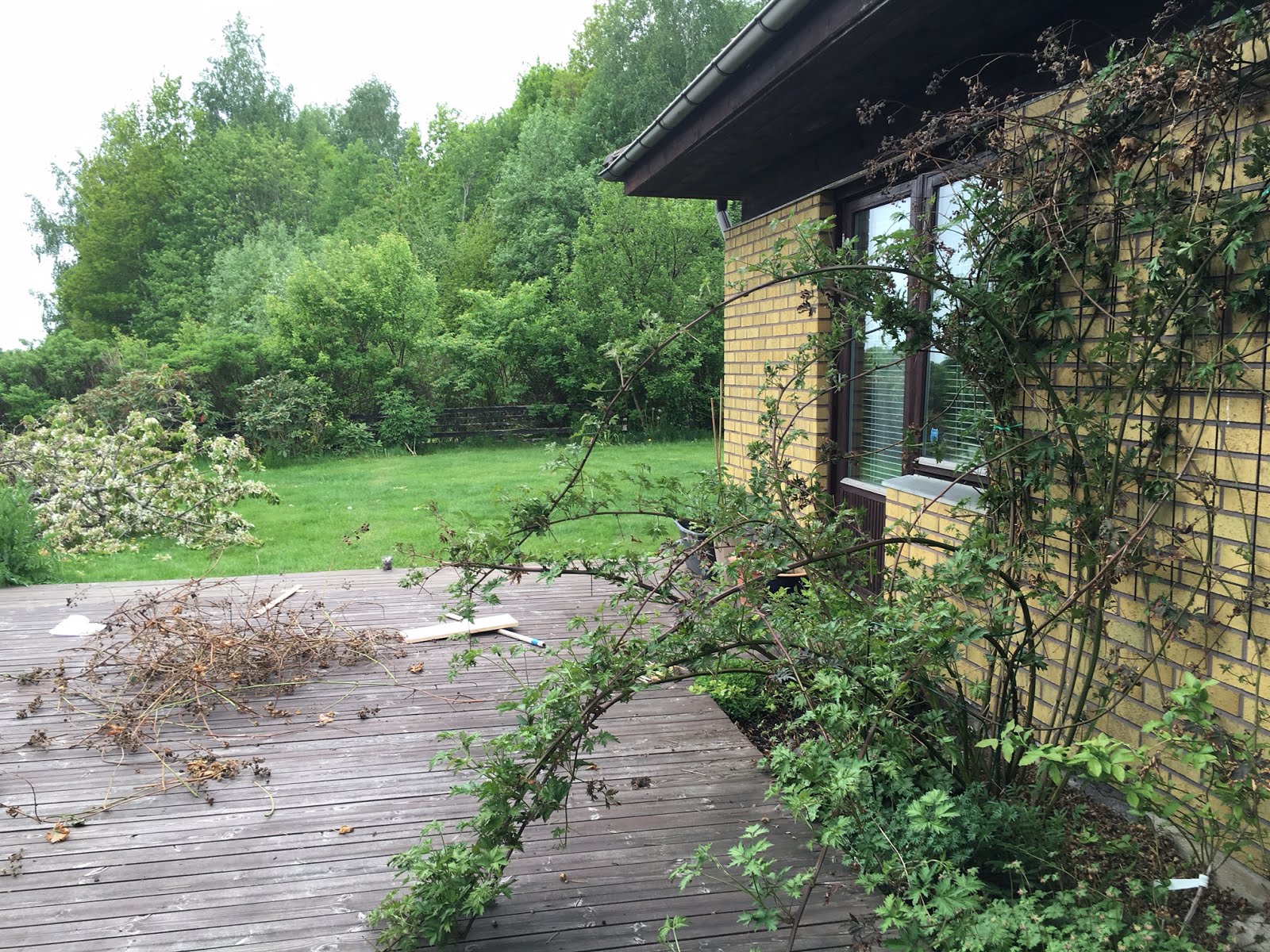 Påskliljorna högg jag ned idag. De samlar bara sniglar om de får stå kvar. Jag vet att de blommar nästa år även om de inte får vissna ner som de ska. Grävde även upp en slags lilja som jag inte gillar och flyttade en stor självsådd akeleja till den riktiga rabatten i altanen. Hoppas bara den klarar värmen som blir uppefter den brutala tegelväggen som ligger mot söder. Häromdagen slet jag upp resterna av tre rosor. Inte min grej med rosor. Vackra som få men jag vill inte ha plantor som måste duttas med. Och helst ska det vara något man kan äta.