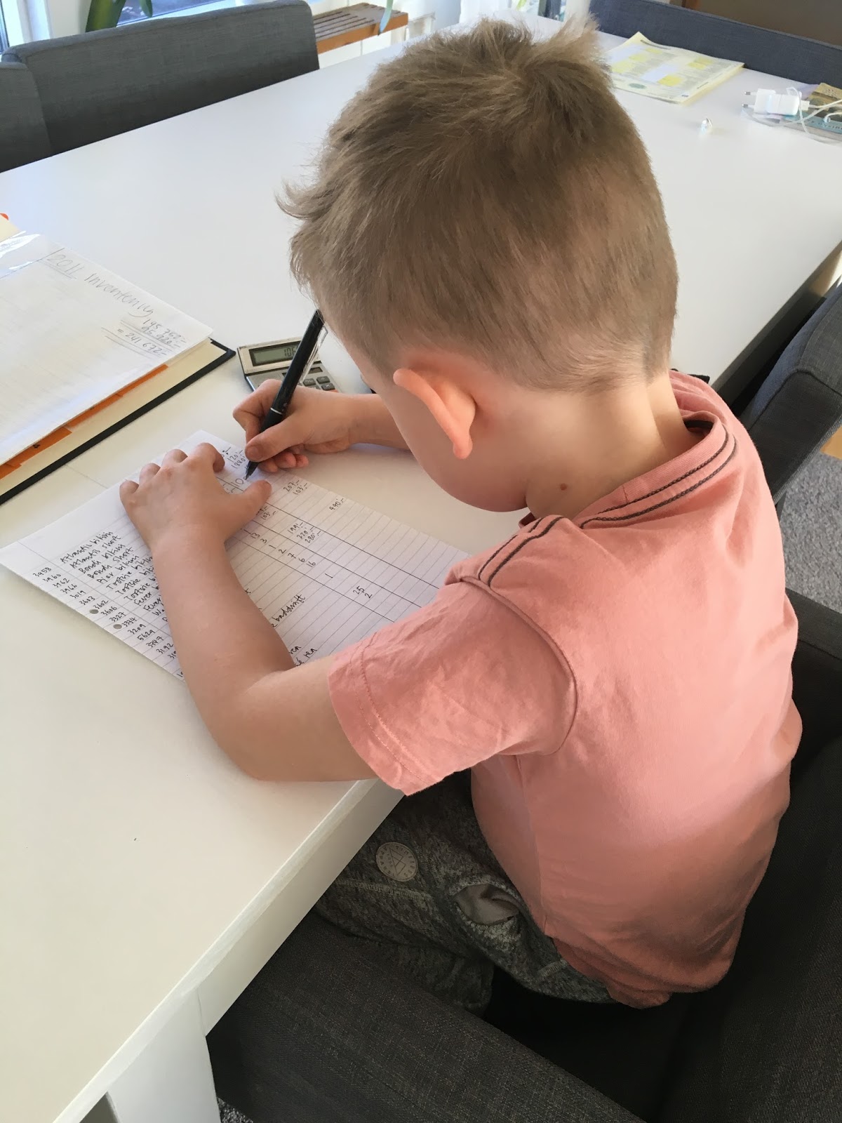 Han vill så gärna hjälpa till. Här sammanställer han inventeringen. Ser väldigt snyggt ut. 🙂 Jag har några olika bollar i luften just nu utöver det vanliga. Hemsidan byggs om och även om jag inte gör det stora jobbet själv så måste jag finnas till hands och svara på frågor och gå igenom saker. Många telefonmöten blir det. Snart släpps den men först lite i smyg så vi vet hur det fungerar innan vi går ut stort.