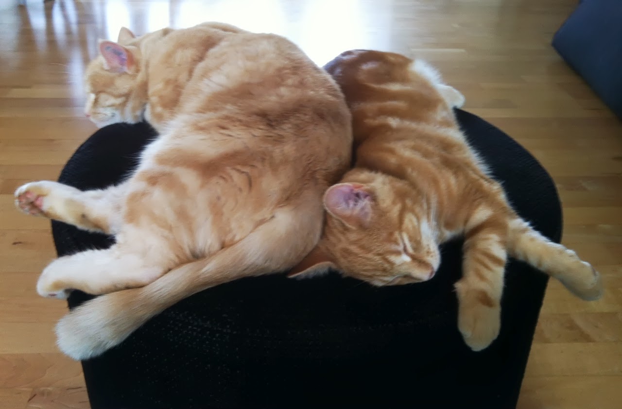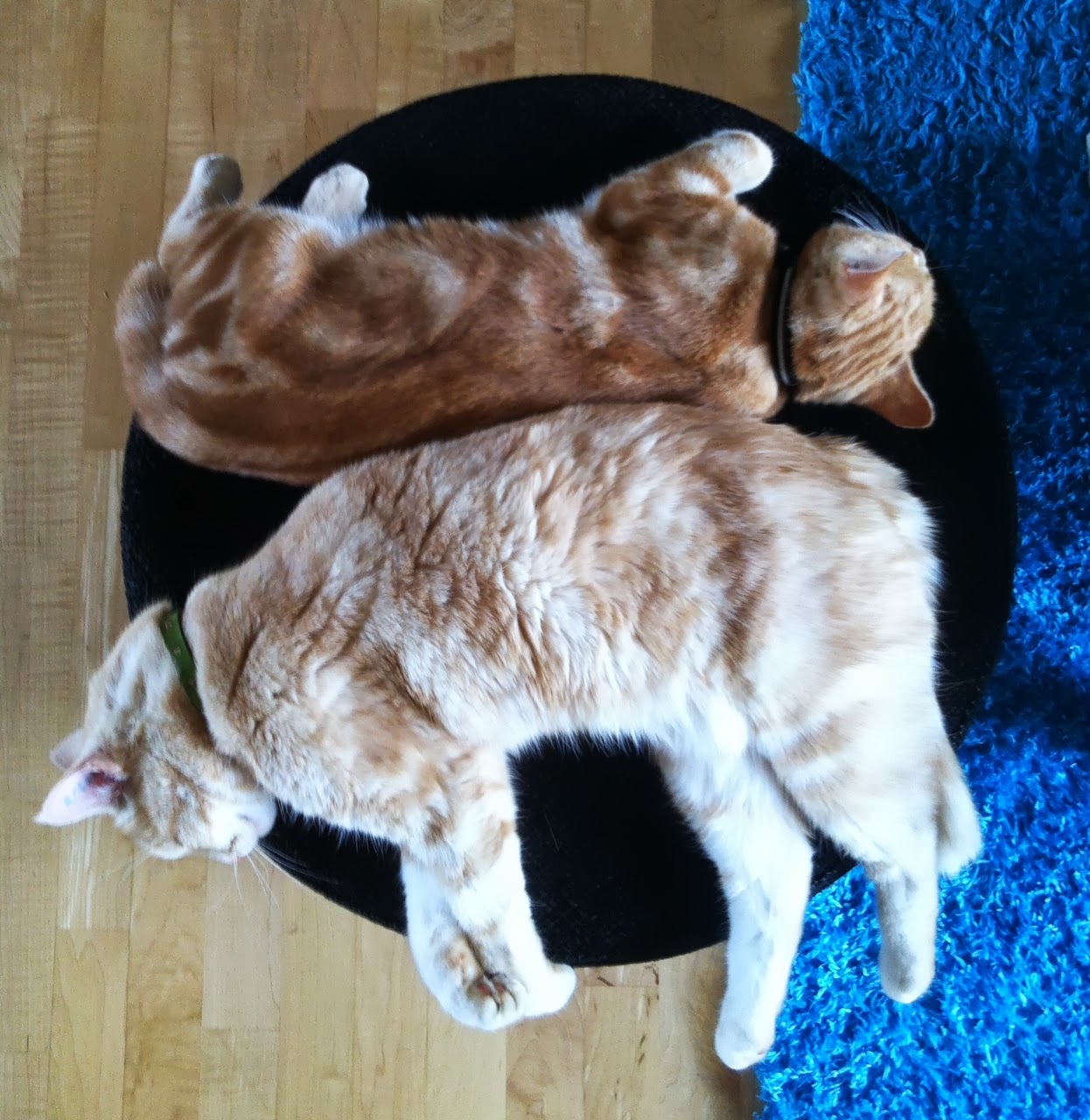 Det gick väl en kvart eller så. Tills den lille inte kunde hålla sig i styr utan började att bråka. Stor katt blir sur, fräser och går ut.
