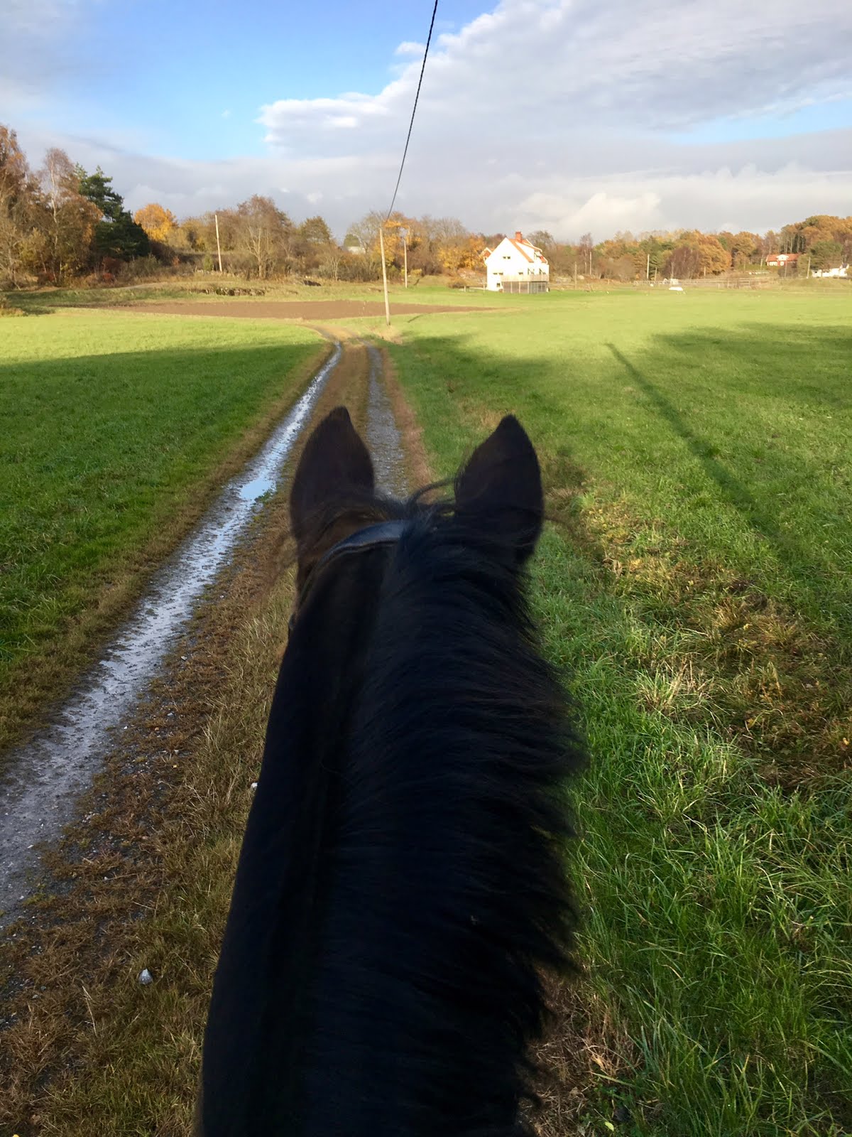 Sassen fick ett par dagar ledigt efter tävlingen. Igår red jag igenom i paddocken. Idag tänkte jag rida ut en sväng. Kom dock inte långt förrän hon fick spunken över någon pryl hon inte sett förut för alla löv. Backade men jag höll mig kall och väntade ut henne. Fanns bara en väg och det var framåt förbi det läskiga. Hon gick vidare men jag tappade lite sugen att gå på stora vägen som jag hade tänkt. Hon är inte rädd för trafik men hon kan bli rädd för typ ett kolapapper. Sassen på vintern är lite “annorlunda” mot när det är varmt. Så vi knallade runt lite på grusvägarna i låg form och hon fick ta förhållningar utan att flippa ur. Ibland glömmer hon tillochmed att andas. Trams-Sass. 🙂 Gick in en sväng i paddocken och gjorde ett gäng halvhalter och övergångar i trav och galopp. Avslutade med skritt på en grusväg. Imorgon får hon vila då jag inte hinner så kör vi vidare på lördag igen.