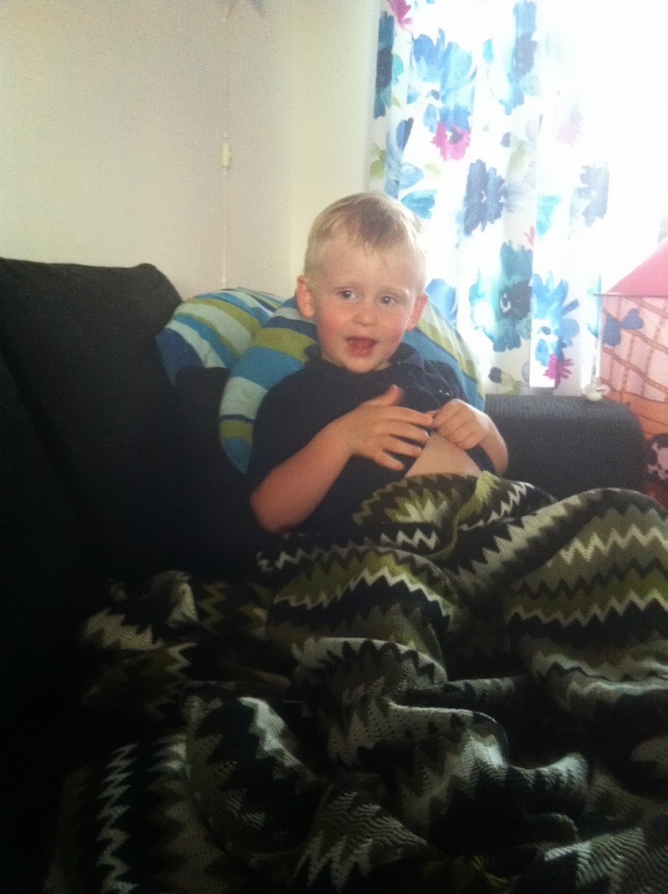 Två kvällar i rad har han chockat mig lite. “Mamma, jag vill sova nu.” Och då menar han i sin säng. Annars har han tyckt det varit mysigt att somna i soffan vilket han får ibland. Inte för att han är svår att få i säng annars men det här var lite intressant. 🙂