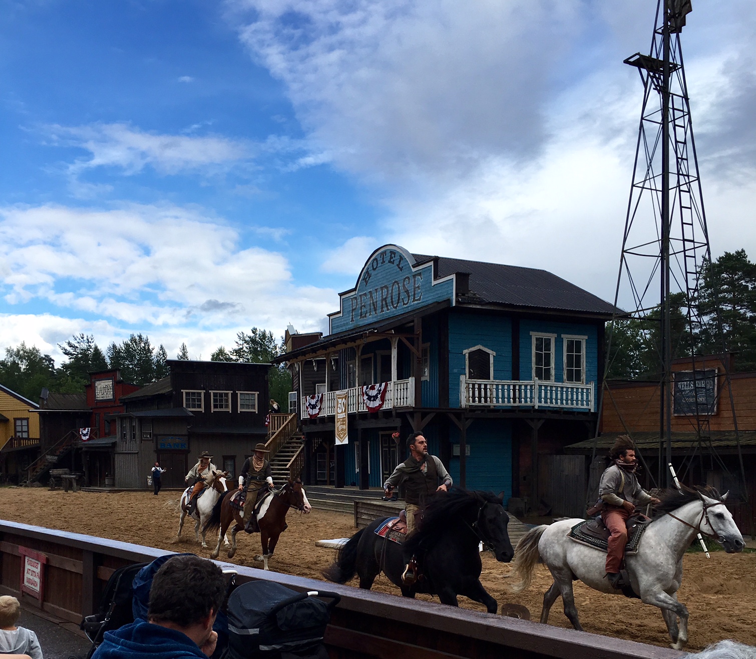 Här är vi på ångloket just innan det blev skottlossning. Bus blev helt vettskrämd och trodde det var på fullt allvar. Sötnosen.