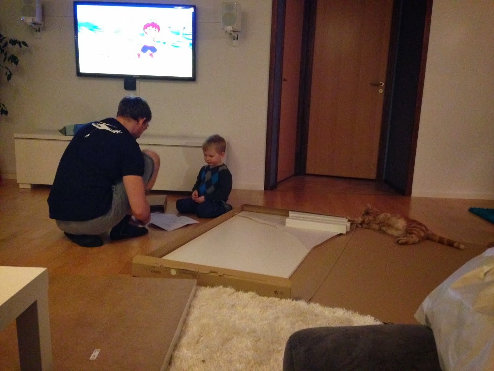 Jag tänkte Buset skulle bada. Glöm att jag får honom ifrån denna stora happening. Lilla Kallekatt far omkring som en stolle mitt uppe i allt. Såklart. 🙂