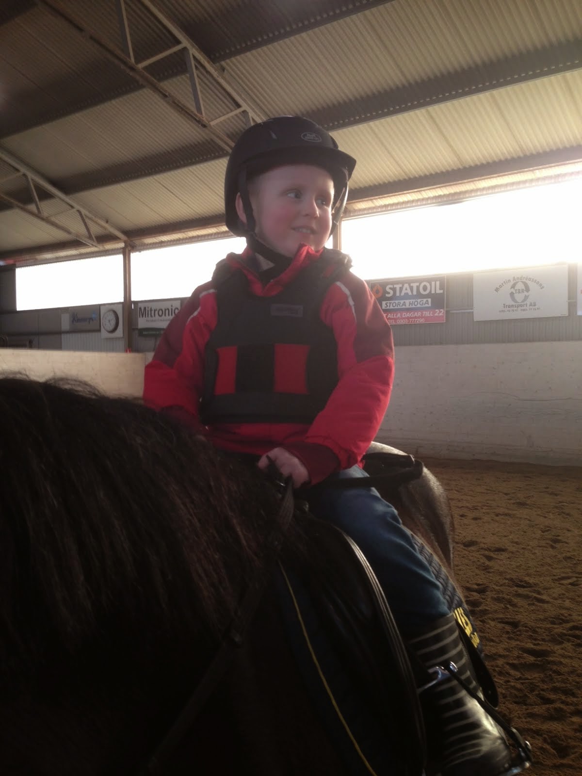 Buset var på ridskolan för första gången. Så glad kille. Red volter och red lätt. Mamman sprang som en stolle. Dagens träning, check!