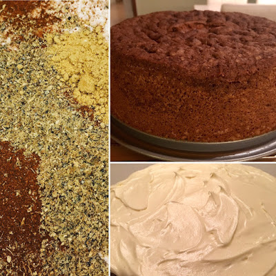 Satte ihop två recept på morotskaka och fick en något kryddigare variant. Och så hög den blev! Och god. Jag som är den ständigt lite missnöjda bagaren var nöjd. Otroligt.
