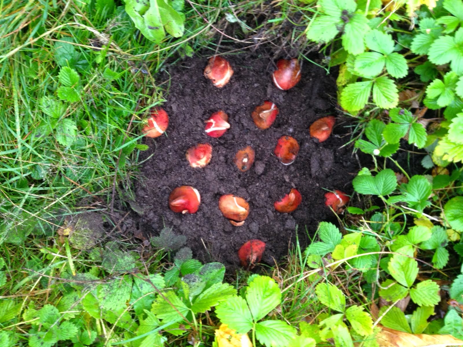 Medan KJ satt på taket passade jag på att trycka ner tulpanlökar som jag hade liggande. Ska bli kul att se till våren. Jag har ju grävt upp och gett far en hel massa påskliljor för jag gillar inte gult. Så nu finns det två nya planteringar med vita och rosa tulpaner.