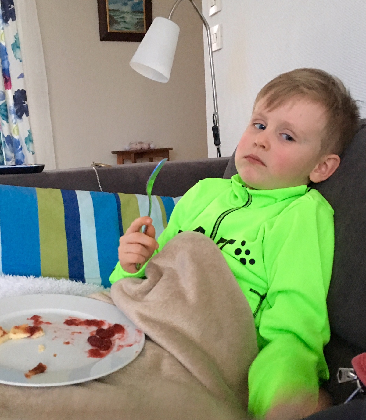 Och stackars Bus har fått en mansförkylning med feber. Stackars lille mannen.