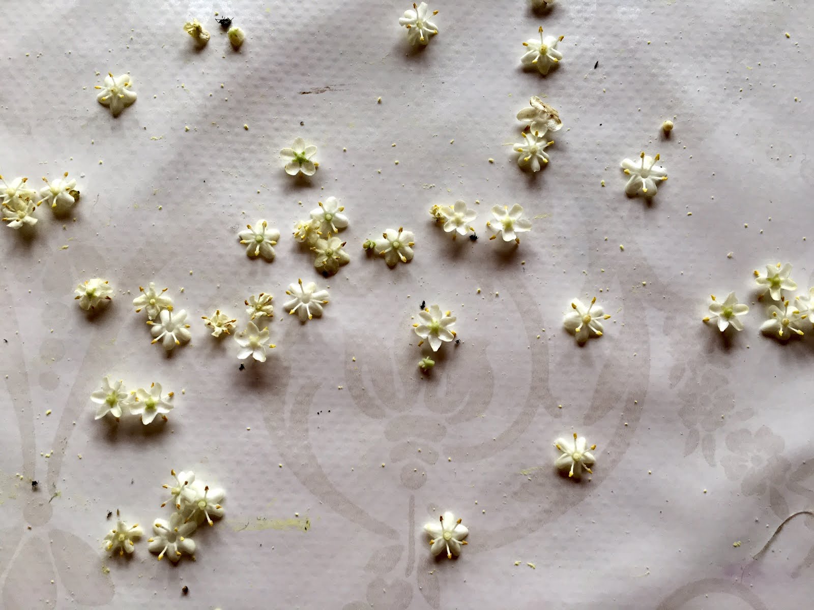 Häll lagen över blommorna och låt stå i kylskåp ca 5 dygn.