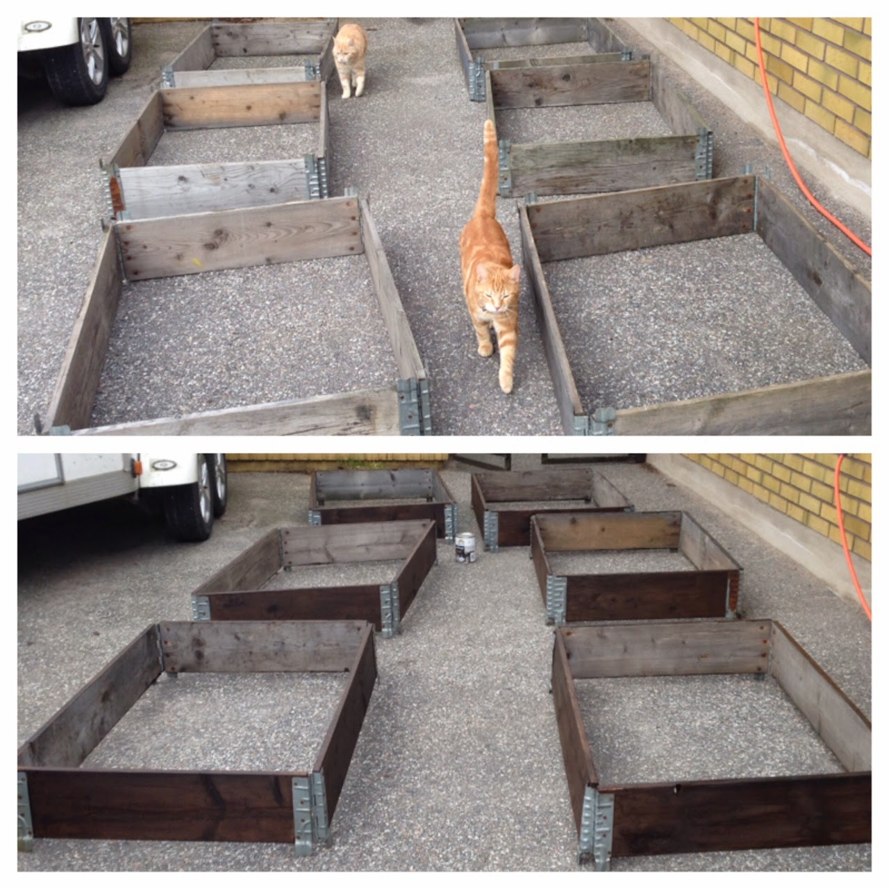 Har nu bestämt mig för att lasera dem på utsidan och ha markduk i botten och eventuellt på sidorna. Vi får se hur länge de håller. Jag vill inte ha några läskiga ämnen som går ut i jorden där våra morötter ska bo. 🙂