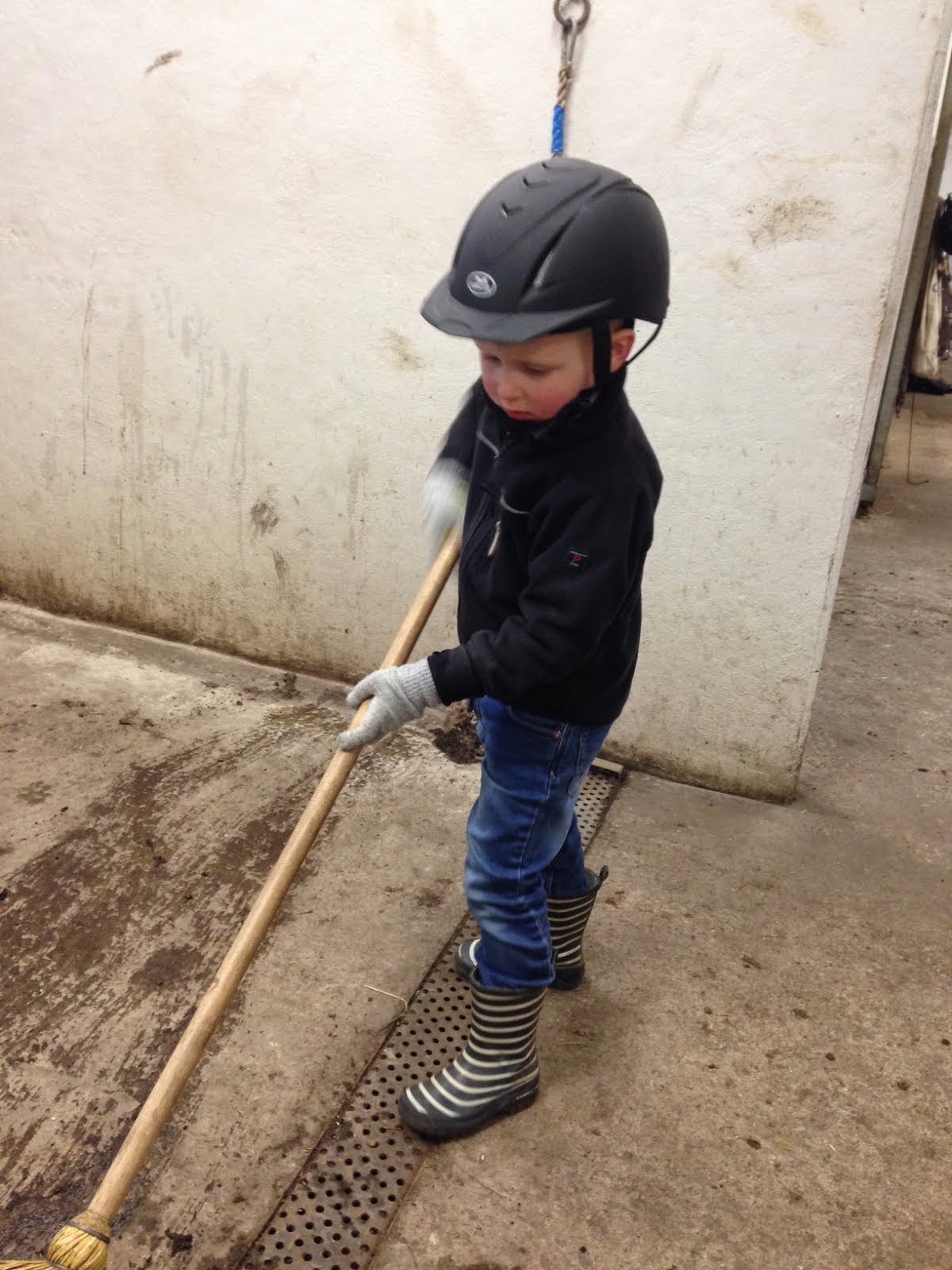 Ridskola igår igen. Nu var det lätt sits och gå över bommar som gällde. Även i trav. Efteråt var det bära tillbaka bommar och träna på några ridvägar. Och gos med snäll ponny. Gulligt.