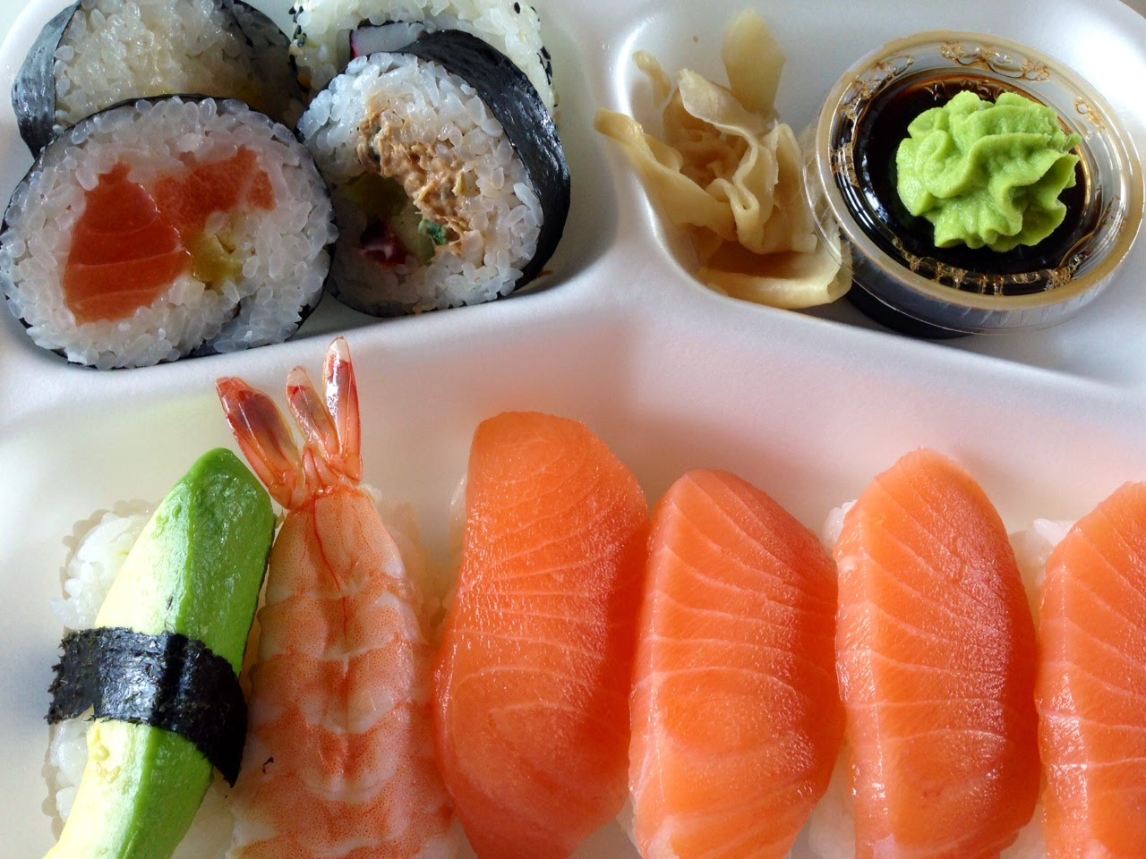 Efter en jobbig förmiddag köpte jag med mig sushi hem. Alltid gott och Ottokatt satt bredvid och tiggde lax. Oväntat. Nope.