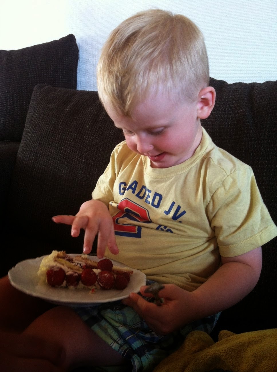 Det var hett att baka i lördags. Svetten rann. Typ varmaste dagen på hela sommaren. Men det blev bra. Vi grillade på kvällen och Buset lekte med sina nya fina leksaker. Bäst för kvällen var nog mattorna med siffror. Tyckte både små och stora barn (och katten). 🙂
