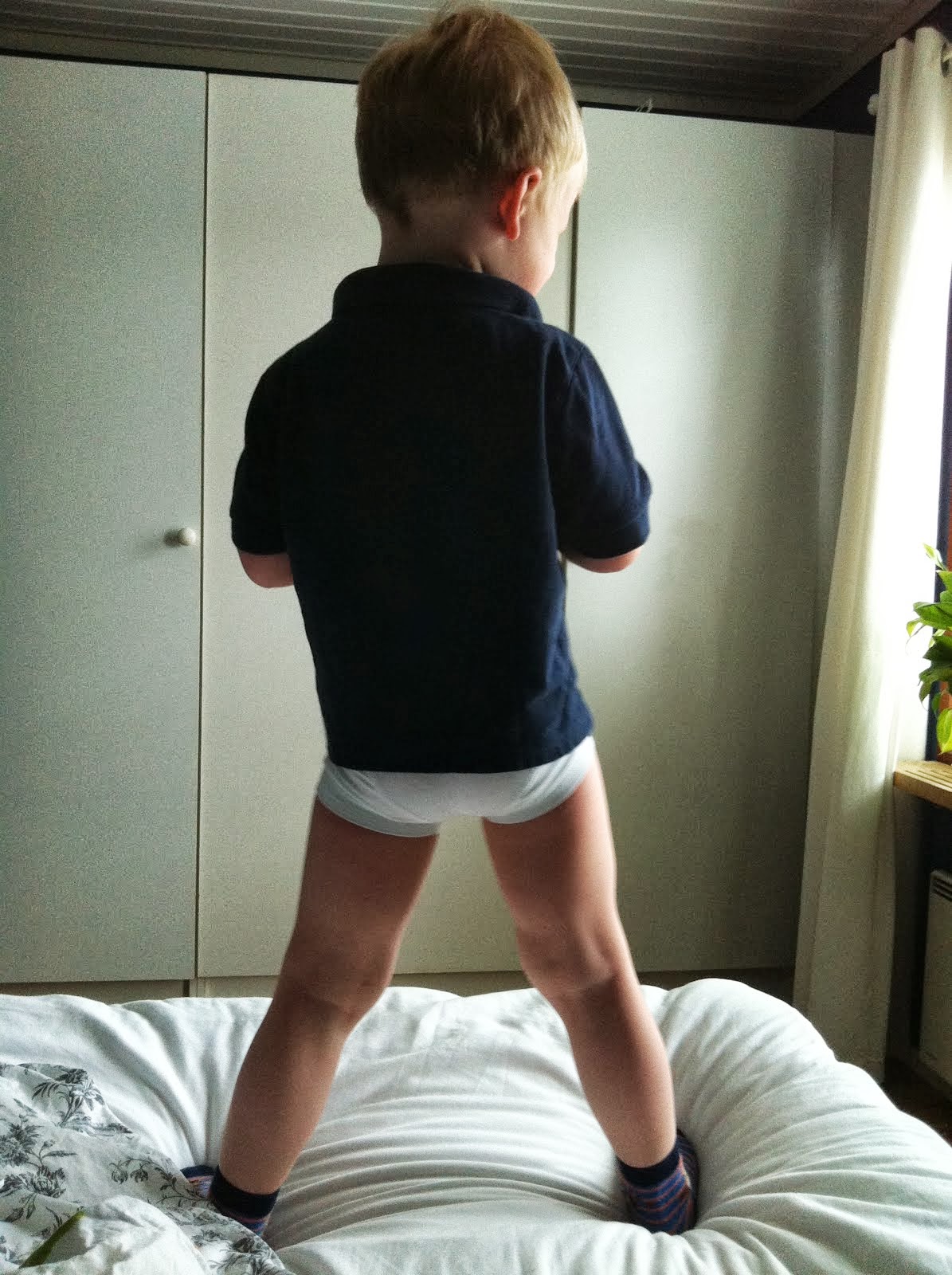 Efter frukost härjade vi runt i sängen. Enormt kul om du frågar den lille Biffen. Såg ut som en mindre bomb slagit ned. Inte så noga. Bara man har kul.