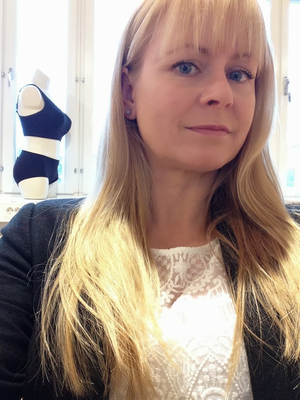 Idag har håret lugnat ner sig lite. Kul med brurr men lite ovant. Idag har jag spets under tweedkavajen. Älskar tweed! Har sett så snygga gubbkepsar här på mässan och jag måste snoka lite mer där. Hoppas jag kan få köpa en till mig och Buset.