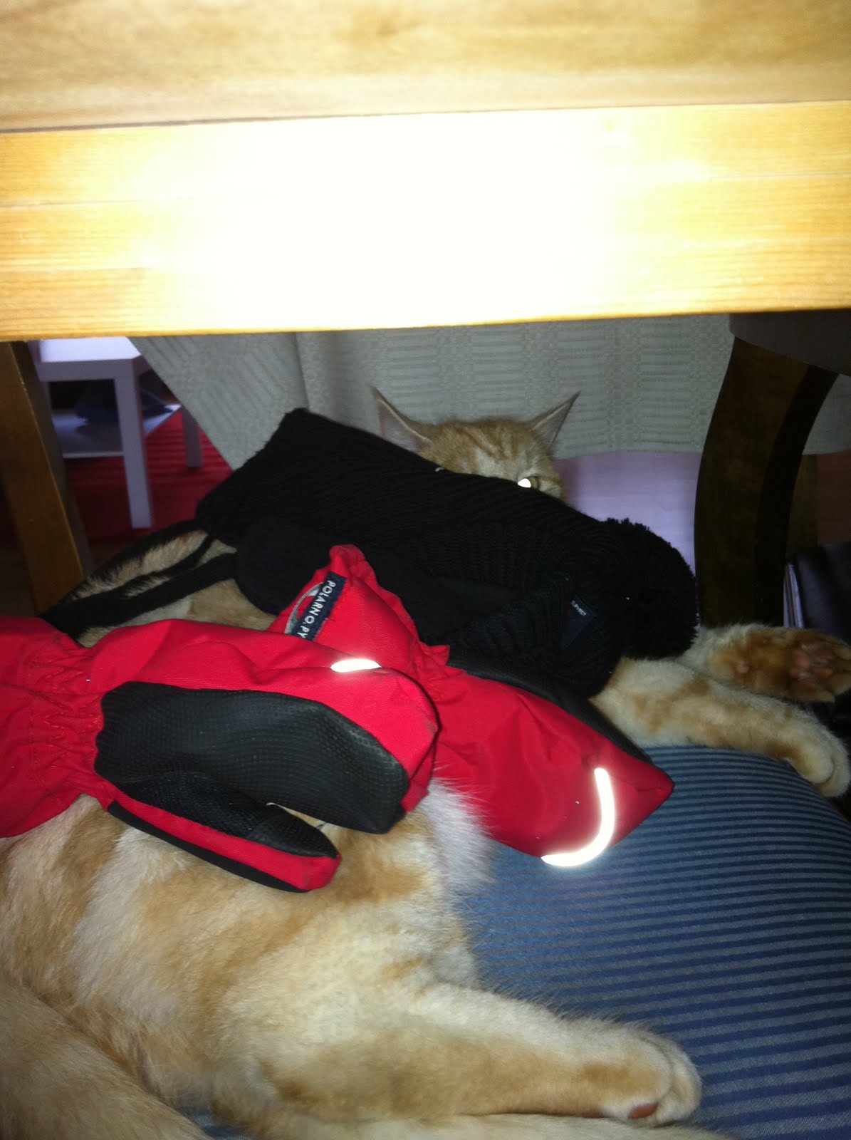Vad är grejen? Tror han att katten fryser? Är katten så ful att han behöver gömmas? Oavsett anledning så ska det läggas saker på katt. 🙂